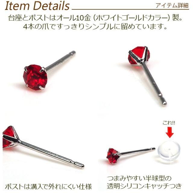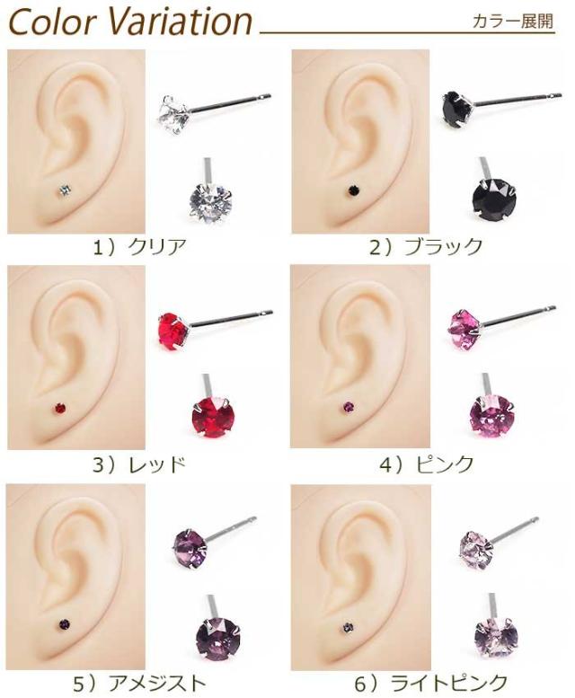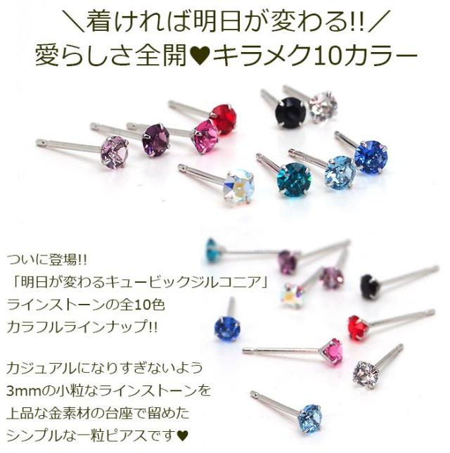 | 明日が変わるキュービックジルコニア ラインストーン 1粒 ピアス 3mm K10 全10色 |
