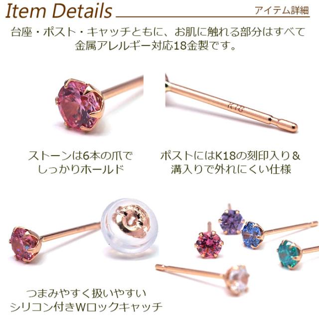 【当店オリジナル】セカンドピアス K18 PG 明日が変わるキュービックジルコニア 4mm つけっぱなし 金属アレルギー 軸太0.65mm 軸長10mm 18K 18金 ピアス メンズ レディース 日本製 キャッチ ジルコニア 一粒