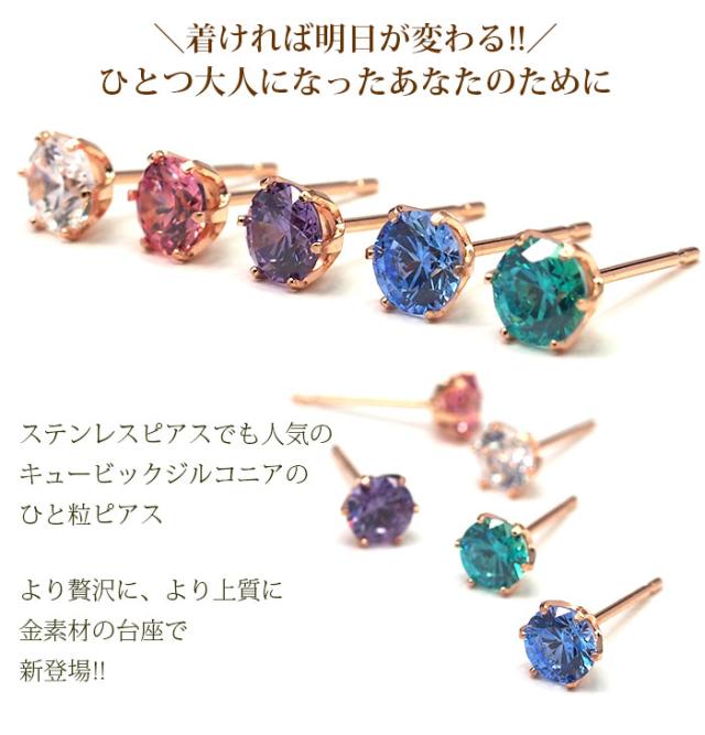 | セカンドピアス ピアス つけっぱなし K18 PG 明日が変わるキュービックジルコニア [4mm]金属アレルギー対応 |