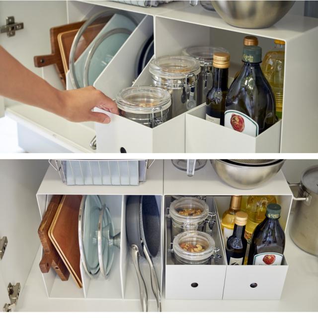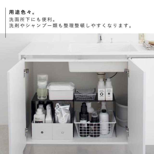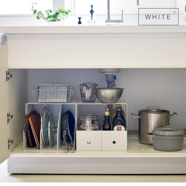 収納スペースを確保してデッドスペースを有効利用!2個組のシンプルなコの字ラック。キッチンのシンク下収納スペースに、鍋やフライパンを平置きしても上部の空間がもったいない!そのようなデッドスペースが有効利用できます。