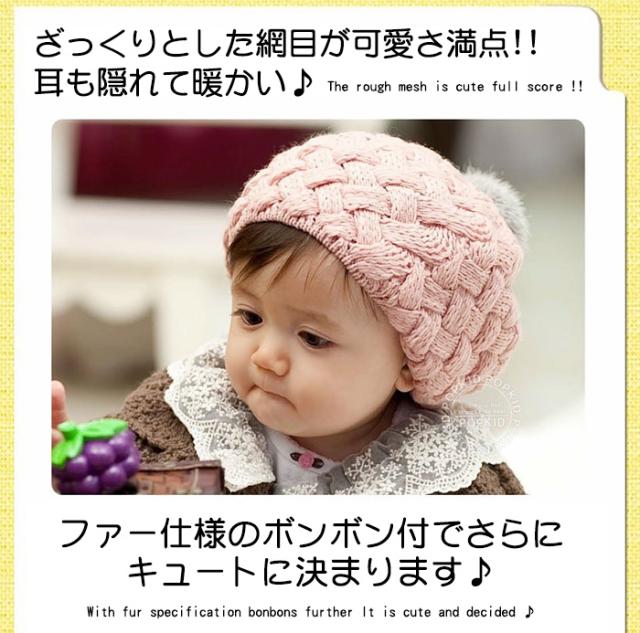 ニット帽 ニット帽子 帽子 ベレー帽 キッズ 男の子 女の子 ベビー 赤ちゃん ファー ボンボン 防寒 h0224
