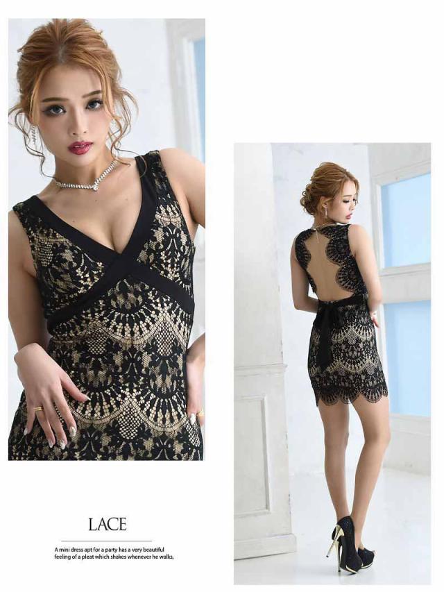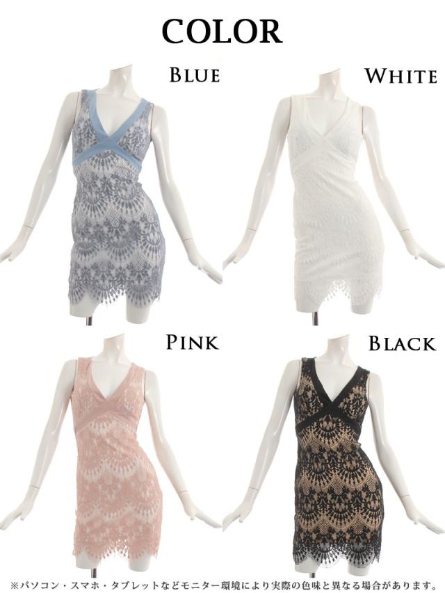 ミニドレス RyuyuChick 総レース タイト ノースリーブ Vカット 価格改定 キャバ ドレス キャバドレス ミニドレス