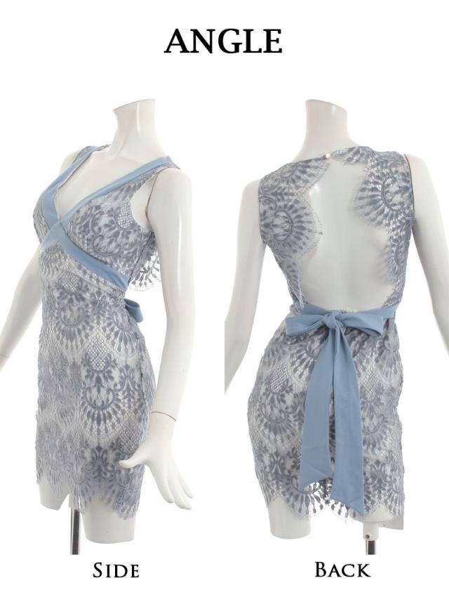 ☆総レースが華やかなノースリーブタイトドレスはバックススタイルもぬかり無い後ろリボン付きミニ丈ドレス♪