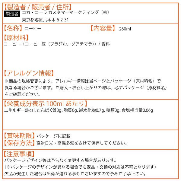 ジョージア 香るブラック 260ml 24本 (24本×1ケース) ボトル缶 無糖 ブラック 日本全国送料無料