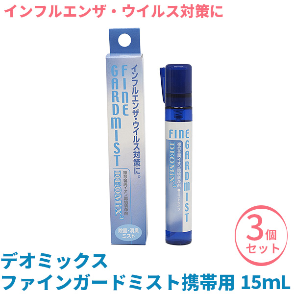 【限定特価】インフルエンザ 花粉 ウイルス対策 除菌スプレー 携帯用 3個セット デオミックス(DEOMIX)ファインガードミスト 15mL‐アルコール 消毒 消臭 抗菌 部屋 除去 銀イオン