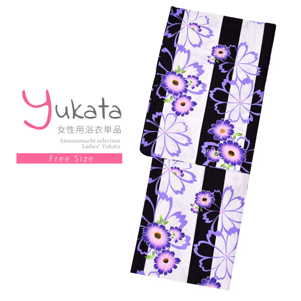 浴衣 レディース 単品「白×黒 マーガレット」フリーサイズ レトロ モダン 大人柄 女性浴衣単品 女浴衣 ゆかた yukata 【メール便不可】