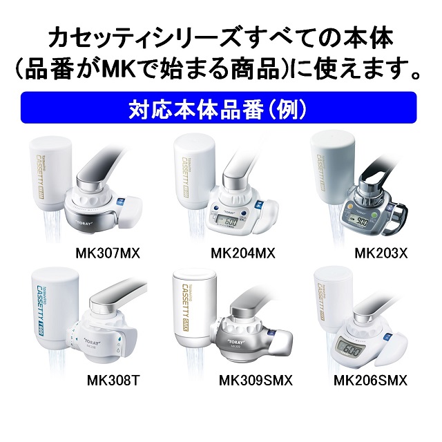 *3 商品の浄水能力は、JIS S 3201:2019 に基づいて測定した結果を表示しています。すでに販売済みの商品は本表示と異なる場合があります。交換目安 600L=約2ヶ月(10L/日使用の場合) 対応機種 カセッティシリーズ全ての本体(品番がMKで始まる商品)にお使いいただけます。