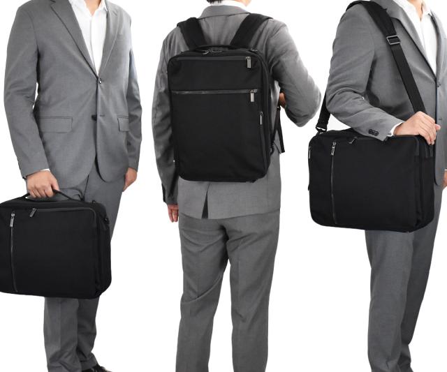 リュック・ショルダー・手持ちの3WAYで、ビジネスからカジュアルまで幅広く活用できます。
