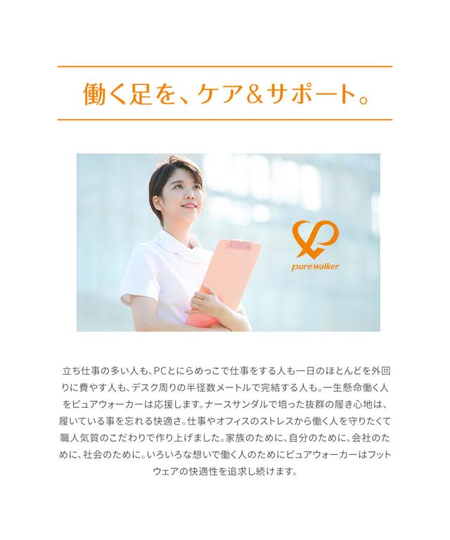 いろいろな想いで働く人のためにピュアウォーカーはフットウェアの快適性を追求し続けます。