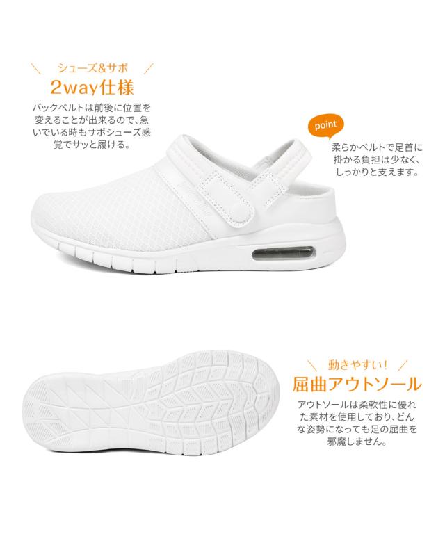ナースシューズ 疲れにくい レディース 白 バックストラップ 2way 軽量 抗菌 防臭 メッシュ 蒸れにくい ナースサンダル 脱げない 医療 病院 ケア 履きやすい 歩きやすい 軽い 看護師 介護士 靴 シューズ サボサンダル 痛くない ホワイト 黒 ブラック 0501