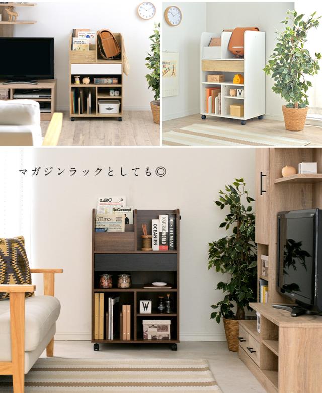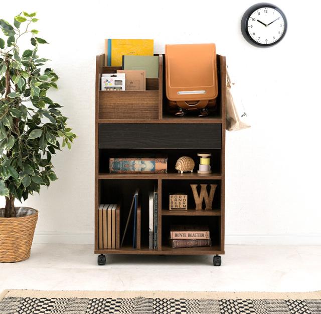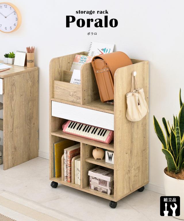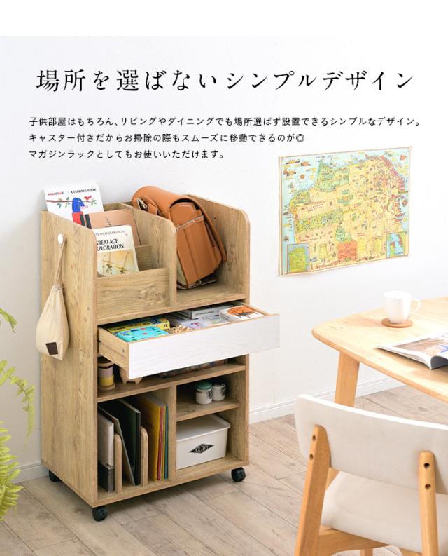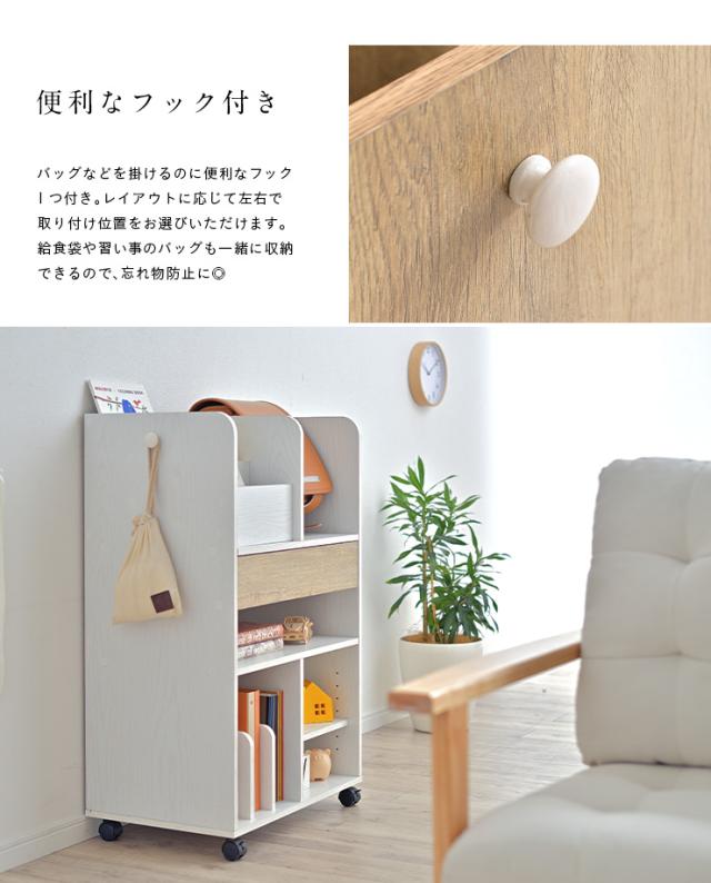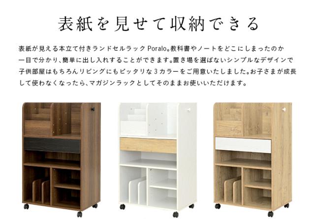 【可動式棚/物かけフック/キャスター付き】ランドセルラック Poralo(ポラロ) 幅60cm 3色対応 ランドセル収納 マガジンラック リビングラック スリム 本立て 木製 シンプル おしゃれ