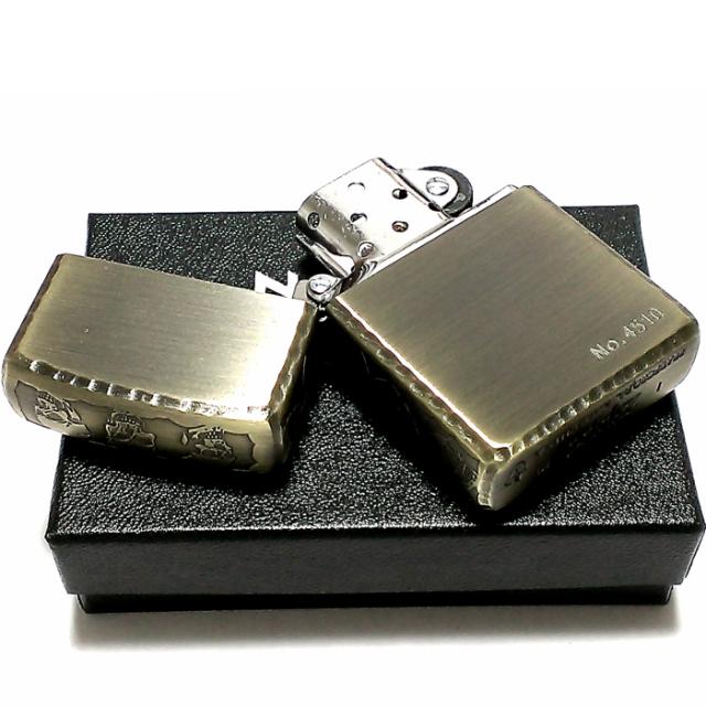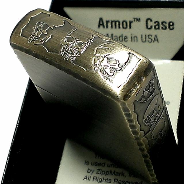 ZIPPO アーマー 限定 3面彫刻 スカル アンティークブラス ジッポ ライタードクロ 古美ゴールド シリアルNo刻印 コーナーリューター