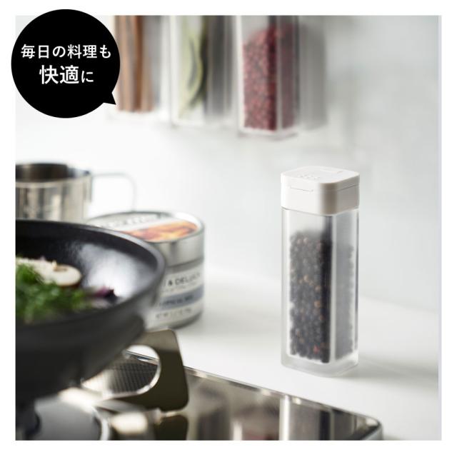 塩コショウ入れ,調味料入れ,片手,調味料ボトル,スパイスボトル,塩,こしょう,スパイス,スライド,マグネット,磁石,マグネット収納,マグネットラック,マグネット収納ラック,冷蔵庫,サイド,冷蔵庫横,キッチン,台所,キッチン収納,キッチン用品,キッチン雑貨,台所用品,壁,壁掛け,壁面,浮かせる,浮かせる収納,空中収納,簡単設置,収納ラック,収納,ラック,ホルダー,tower,タワー,TOWER,ホワイト,ブラック,白,黒,モノトーン,山崎,yamazaki,生活感が出ない,すっきり,コンパクト,省スペース,シンプル,シンプルデザイン,スタイリッシュ,おしゃれ,お洒落,オシャレ,インテリア,雑貨,部屋,賃貸,マンション,アパート,自宅,家,一人暮らし,独り暮らし,トータルコーディネート,新生活,引越,引越し,引っ越し,新築,新居,ベーシック,定番,普段使い,デイリーユース,親子,家族,ファミリー,共働き,ワーママ,片付け,整理整頓,アイデア,便利グッズ,便利アイテム,おすすめ,オススメ,人気