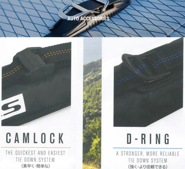シンプルな簡易ルーフラック。パッドとカムロック・タイダウン付き。