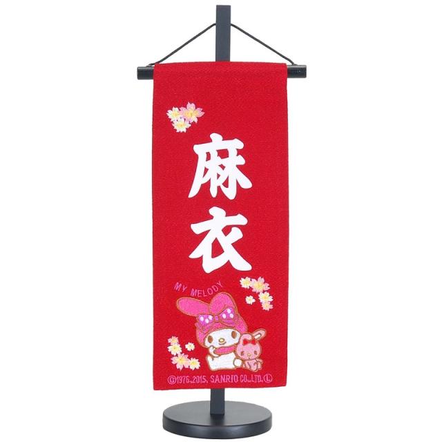 名前旗 [マイメロディ] 赤生地 白プリント文字 (小) スタンド付き 命名座敷旗 雛人形 高さ39cm [sb-3-n10-s]