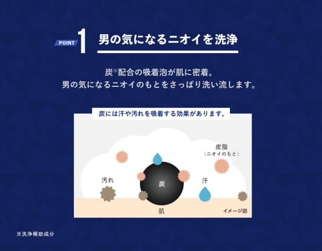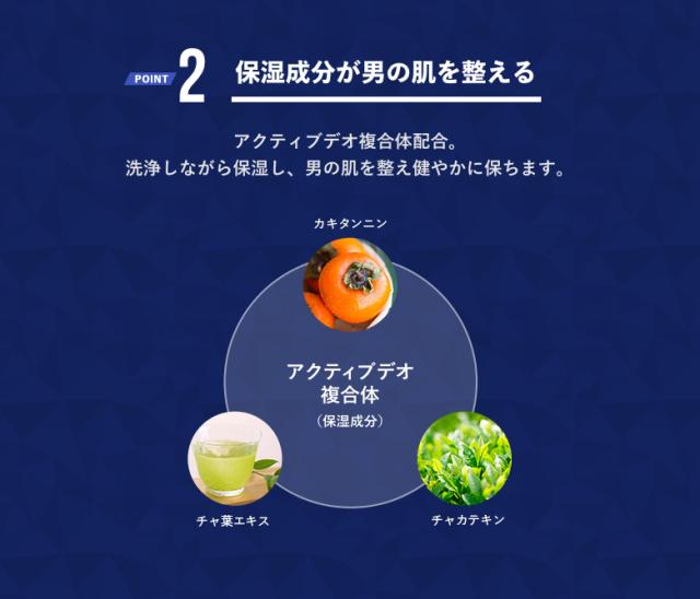さらに、保湿成分配合で、洗浄しながら保湿し、男の肌を整え健やかに保ちます。