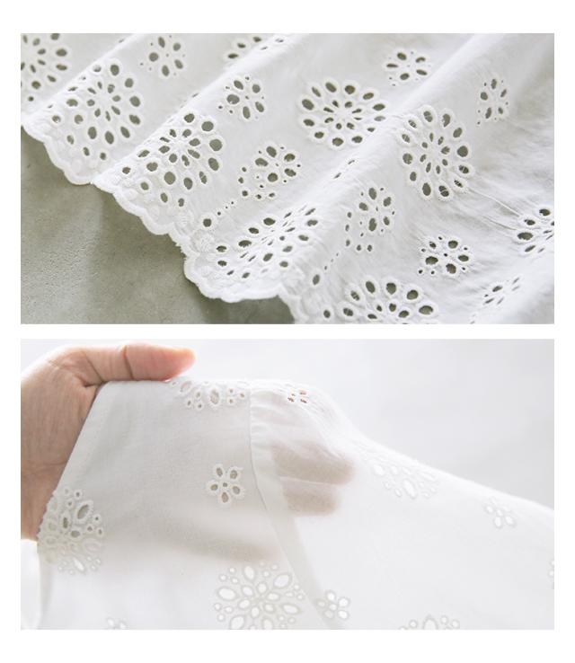 ■デザイン コットンレースを贅沢に使用したティアードワンピース。貝殻を並べたような波形の裾レースがポイントになったデザインです。ティアードの切り替え部分にはギャザーを入れて、ふわりとしたシルエットに。袖口には伸縮性のあるシャーリングゴムを入れ、フレア感を演出。 ■素材 柔らかくさらりとした、着心地の良いコットンレース生地。身頃と裾は裏地付き、袖部分は一枚で涼し気な透け感を出しました。 ※オフホワイトは透け感がございますのでインナーのご着用をおすすめいたします。 ■コーディネート 足元はスニーカーを合わせた、甘さの中にカジュアル要素をプラスした着こなしがおすすめです。デニムのパンツをレイヤードしても◎ |