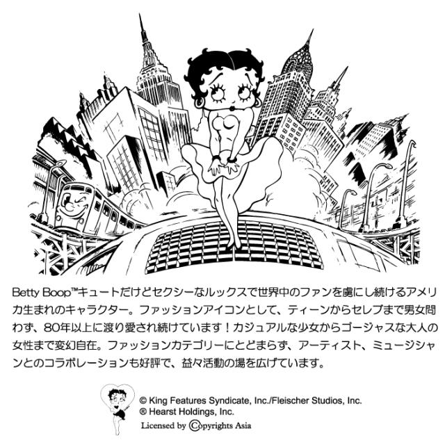 | Betty Boop(TM) はキュートだけどセクシーなルックスで世界中のファンを虜にし続けるアメリカ生まれのキャラクター。ファッションアイコンとして、ティーンからセレブまで男女問わず、80年以上に渡り愛され続けています!カジュアルな少女からゴージャスな大人の女性まで変幻自在。ファッションカテゴリーにとどまらず、アーティスト、ミュージシャンとのコラボレーションも好評で、益々活動の場を広げています。 | ||||