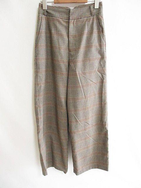 【中古】ナノ&コー nano&co チェック ロングパンツ ワイド 茶 36 レディース