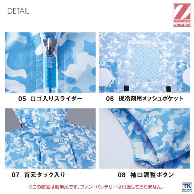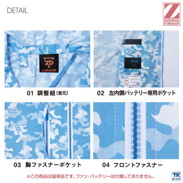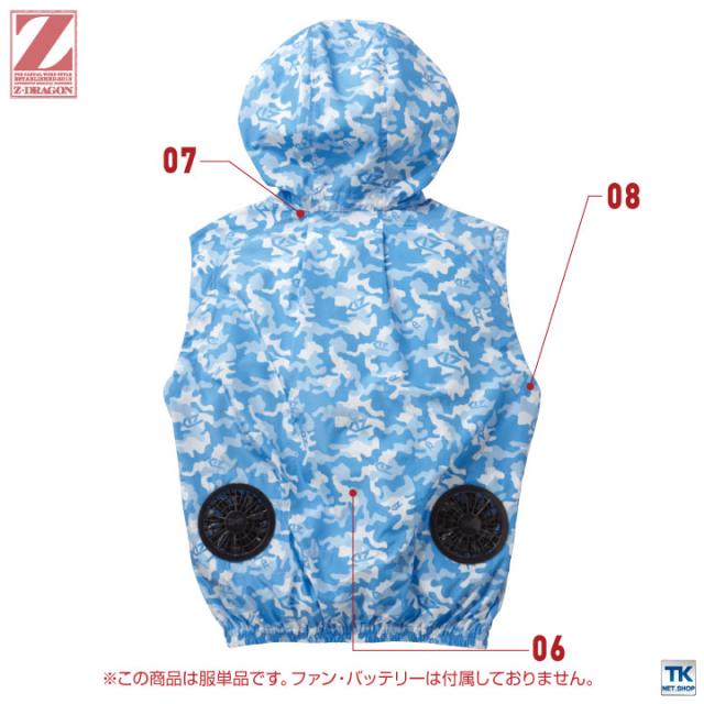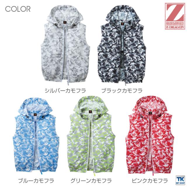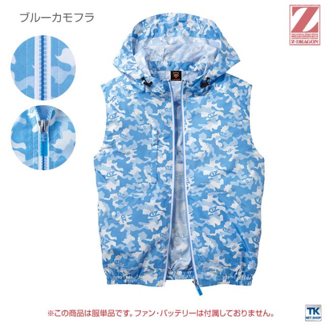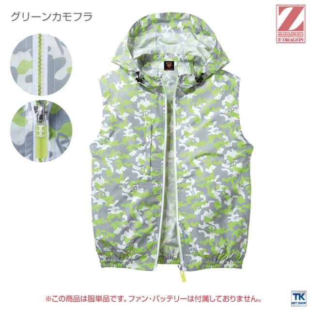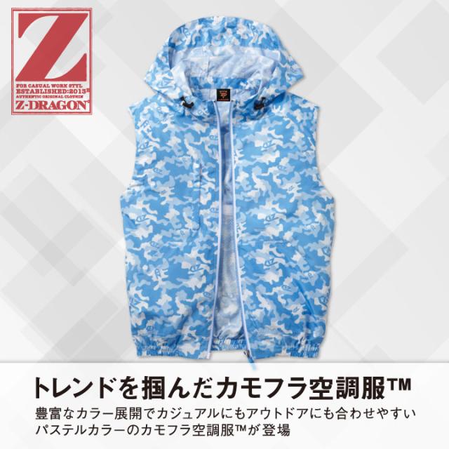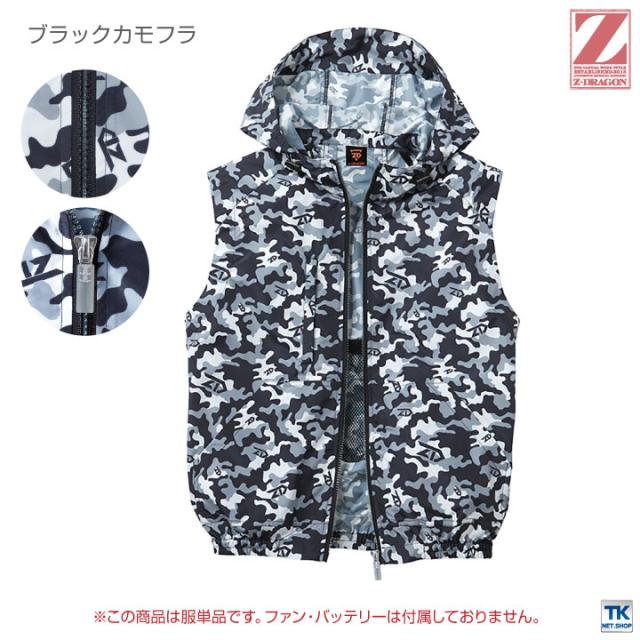 74190 Z-DRAGON ベスト パーカー 迷彩 カモフラ 空調服(R) アウトドア スポーツ カジュアル おしゃれ 作業服 夏 ポリエステル100% メンズ 空調服(R)単品