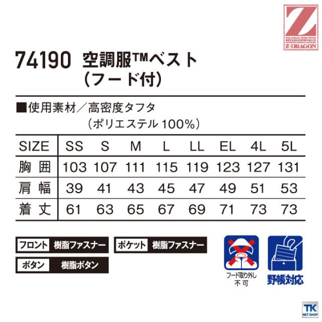 空調服R Z-DRAGON ベスト フード付 作業服 自重堂 メンズ 空調ウェア 春夏 空調作業服 単品 jd-74190-t