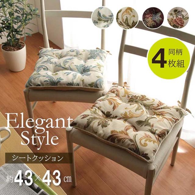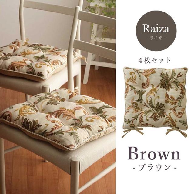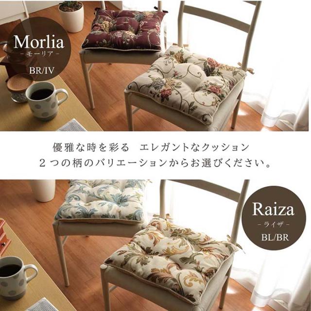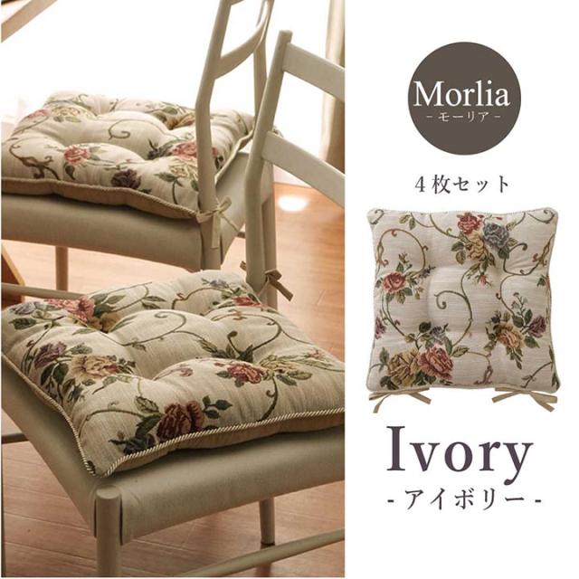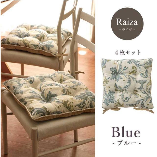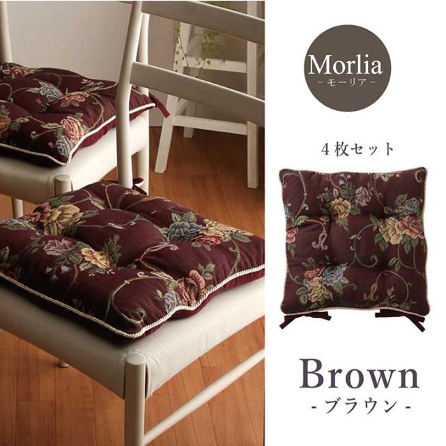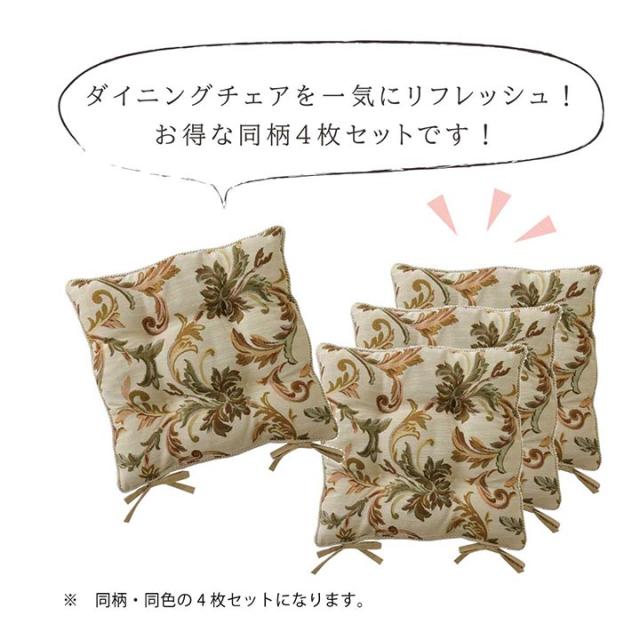 椅子 クッション シートクッション ひも付き 在宅ワーク テレワーク 長時間 椅子用 ジャガード織 「モーリア/ライザ シートクッション 同柄4枚組」 約43×43cm 日本製 ダイニング 座布団