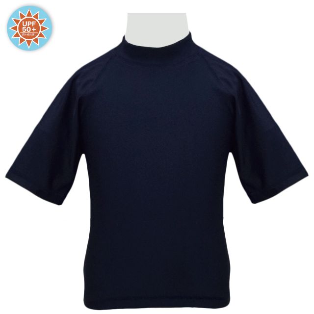 スクール水着 ラッシュガード 半袖 子供 UPF50+ネイビー