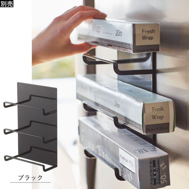 強力マグネットで冷蔵庫扉やスチール面に付けたまま、キッチンでよく使うラップなどの小物を収納できるホルダーです。