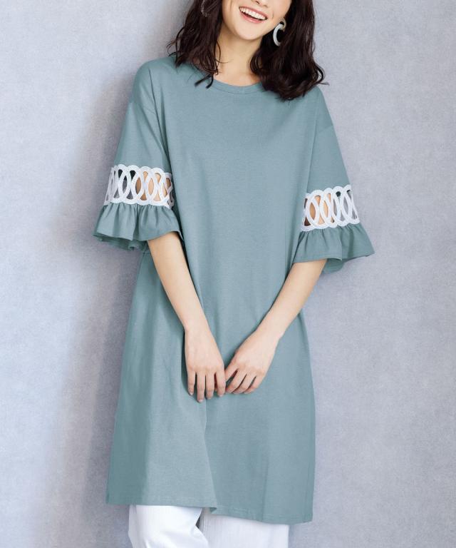 袖部分にサークルモチーフのレースをあしらったチュニック。