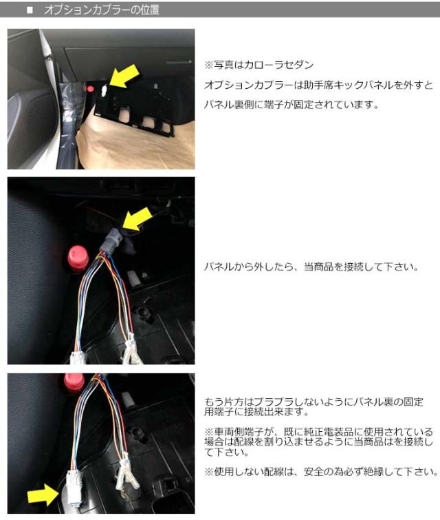 トヨタ カローラ系 お車のオプションカプラーに接続するだけで、電源用配線を簡単に取り出す事が出来ます TR-148