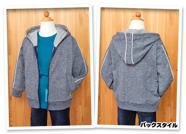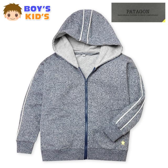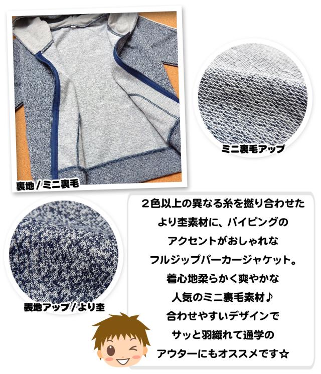 【送料無料】男児 キッズ フルジップ パーカー ジャケット アウター より杢 ミニ裏毛 パイピング 刺繍 子供服 男の子 110cm 120cm 130cm a-1777a-nv【メール便対応】