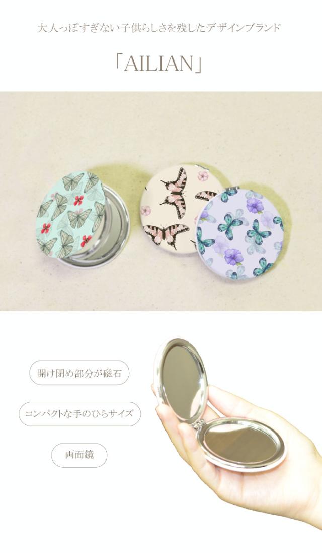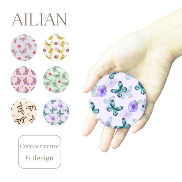 ミラー コンパクトミラー 化粧 コスメ 鏡 拡大鏡 レディース かわいい おしゃれ 柄 バタフライ 蝶々 大人可愛い 30代 40代 ママ