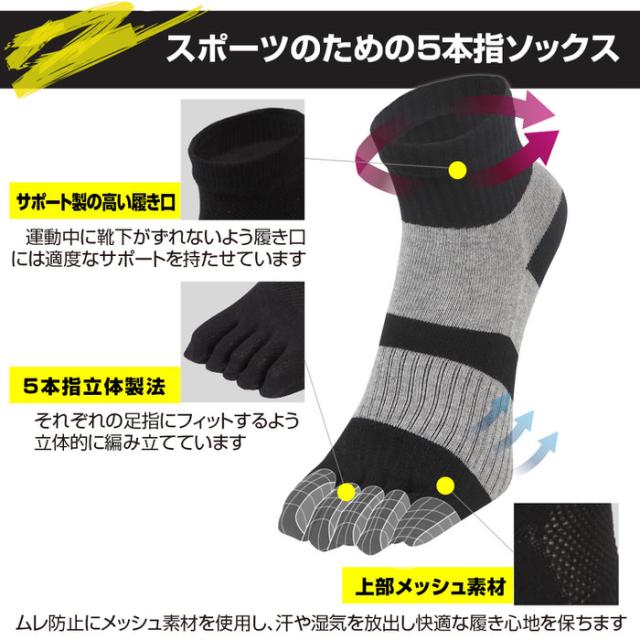 ■商品説明:スポーツ の パフォーマンス 向上に最適な 5本指 ( 五本指 ファイブフィンガー ) ソックス です。カラーは、使いやすく おしゃれ でスマート に見える かっこいい ブラック 黒 となります。