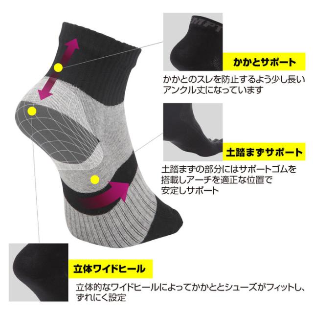 運動中 に靴下がずれないよう履き口には適度なサポートを持たせています
