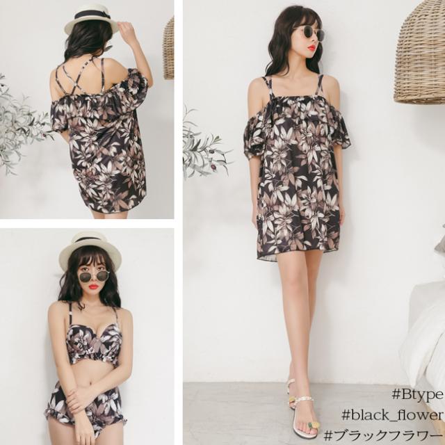 Bタイプはオフショルダーのミニワンピースがセットに♪トップスは胸下のフリルやバッククロスでスタイルアップ!ハイウエストのボトムや袖ありのワンピースが体型カバー力も抜群!