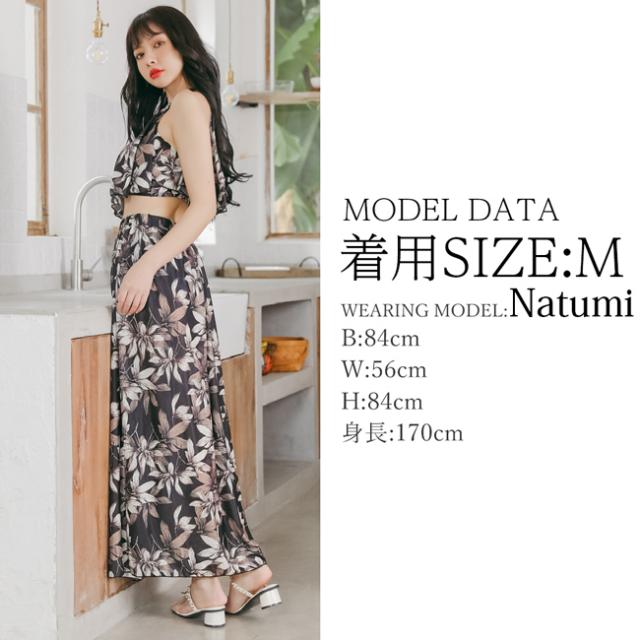 Aタイプはトップスがホルターネックになっていてカップもノンワイヤーで快適!深いスリットが入ったロングスカートがセットになりエレガントな印象に。