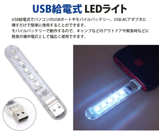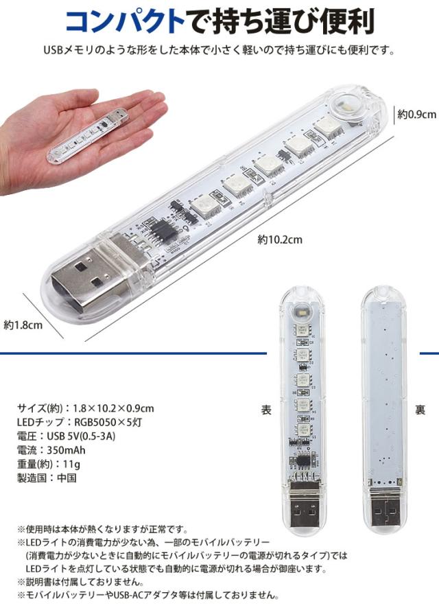 USB LEDライト USB給電 LED5灯 色切り替え 軽量 小型 コンパクト 簡単点灯 携帯 アウトドア 非常時 PR-RGB5LIGHT【メール便 送料無料】