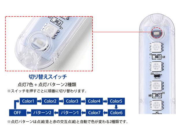 LEDライト本体のスイッチを押すことで順番に点灯色を変更することができます。