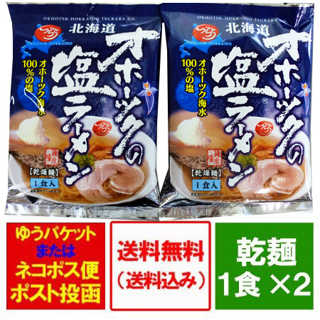 オホーツクの塩ラーメン 送料無料 オホーツクの塩 ラーメン 袋麺 インスタント 乾麺 1袋×2個 つらら ラーメン スープ付 オホーツク ラーメン