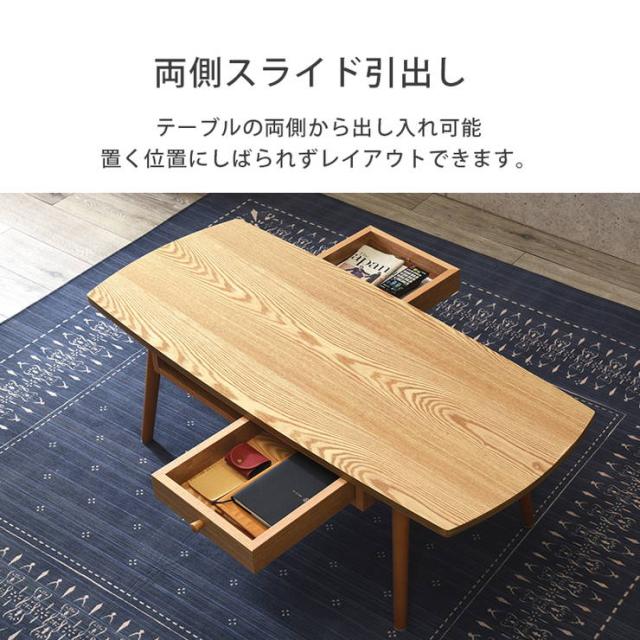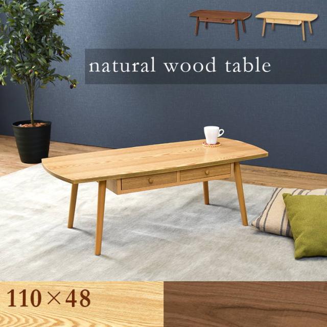 テーブル 木製 センターテーブル 引き出し付き 長方形 おしゃれ 天然木 幅110 奥行48