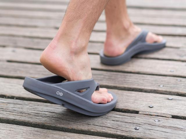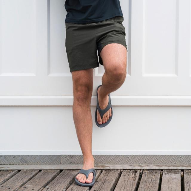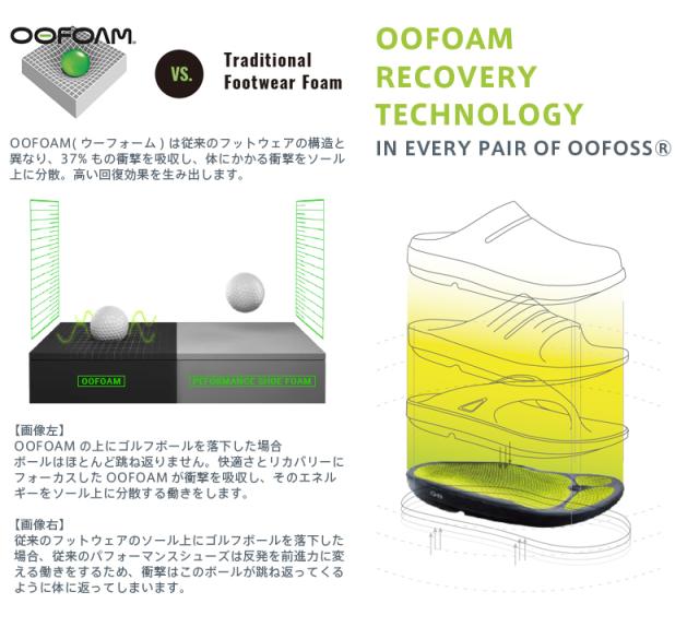 土踏まずを包み込むような感覚で、より自然な動きを実現。足、膝、背中の痛みも軽減してくれます。OOFOSのフットウェアは高密度構造になっており防臭効果も発揮。水に浮く軽量設計です。