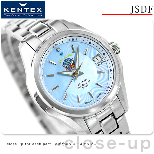 正規品 7年保証キャンペーン ケンテックス JSDF ブルーインパルス 33mm ダイヤモンド 日本製 クオーツ レディース 腕時計 S789L-05 Kentex JSDF BLUE IMPULSE アナログ ブルーシェル ◆Kentex(ケンテックス)は1989年に創業し、1994年にケンテックス・ジャパンを設立して本格始動しました。「高品質な時計を、適正な価格で」をブランドコンセプトに掲げています。創業以来、時計外装の技術とデザイン力を培ってきており、日本のクラフツマンシップでディテールにこだわり抜き、機能と美を融合させた価値ある時計を造っています。 防衛省の協力のもとで企画・製作されているJSDFシリーズ。女性自衛官からの要望で登場したレディースモデルです。サファイヤガラス、メタルベルトを使用し、現場でより長く使える仕様へ進化するとともに、12時位置にはダイヤモンドを入れ、女性らしさも表現。プレゼントにもおすすめです。 ブルーインパルス グッズ