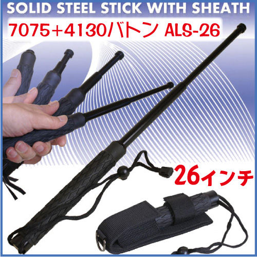軽く、打撃力がある警棒 護身グッズ 警棒 軽量 打撃 4130鋼と7075-T6アルミ合金使用 26インチ バトン ALS-26 ラバーグリップ/ソフトグリップ
