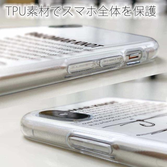 | ケースの素材について | 側面はゴムのように柔らかいTPU素材で、スマホ本体を守ります。万が一の落下でもケースが割れることがなく、耐久性の高いケースとなります。クリア(透明)のTPUケースにプリントしていますので、スマホ本体のカラーを活かしながらデザインケースが楽しめます。 |