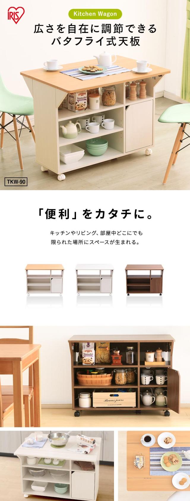 キッチンカウンター キャスター付 棚 キッチンワゴン 食器棚 レンジ台 扉付き TKW-90 収納 台所 ダイニング バタフライ式 折りたたみ 折り畳み キッチン ワゴン キッチン収納 ストッカー アイリスオーヤマ 新生活 インテリア