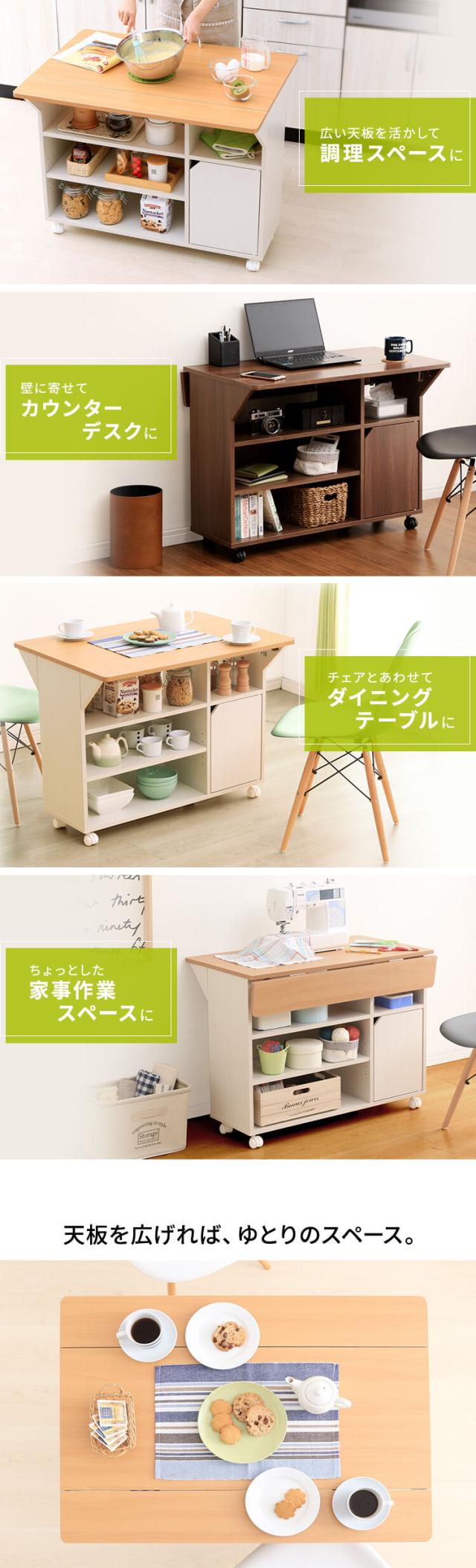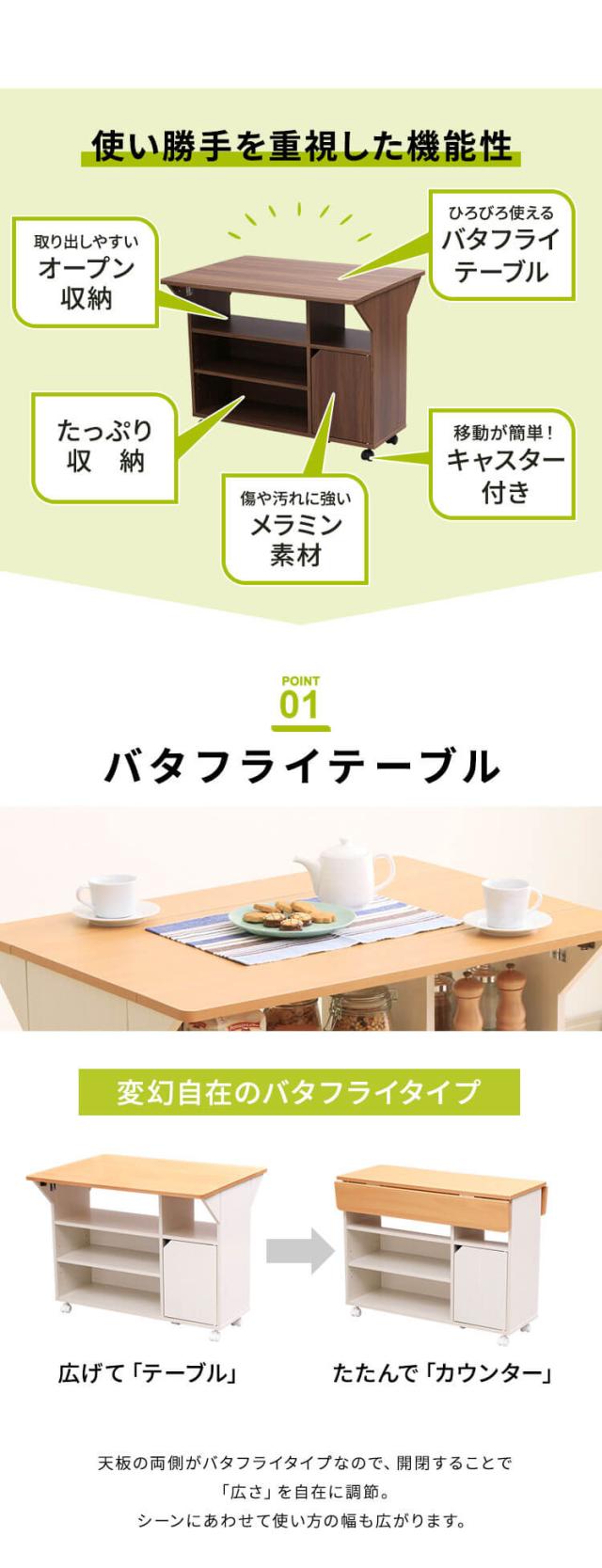 便利なバタフライ式天板のキッチンワゴンです。