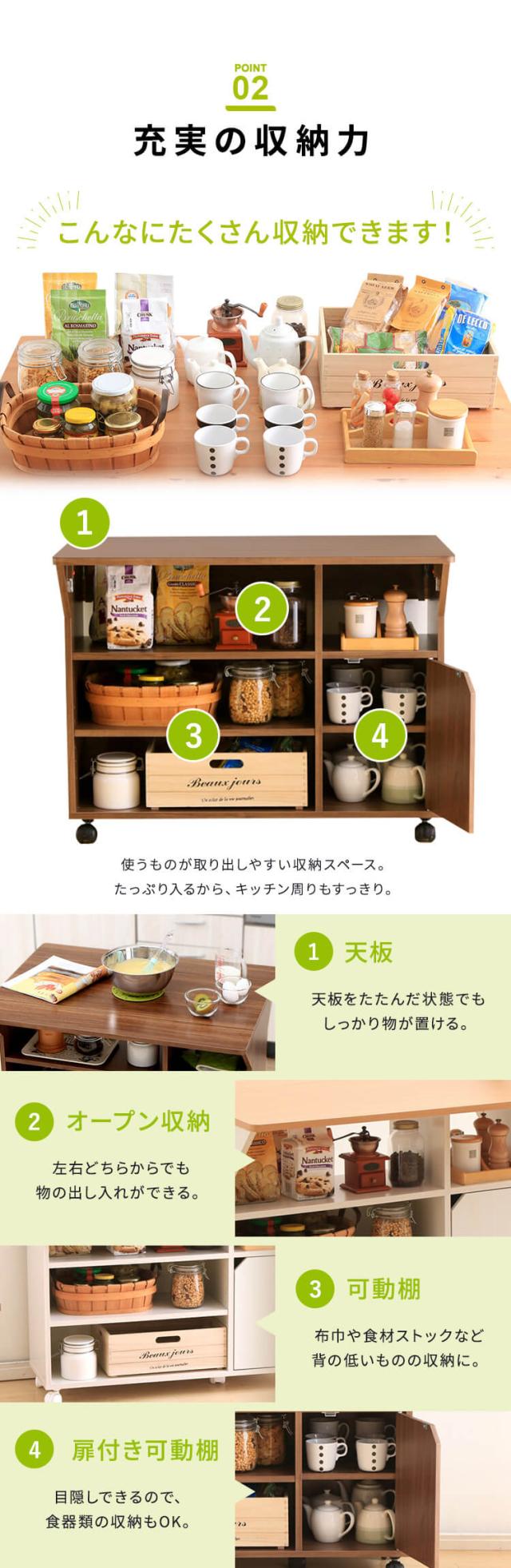 たっぷり収納できる棚付きなので、キッチンがすっきり片付きます。