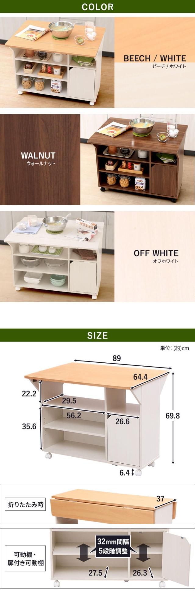 外寸:幅約89.0×奥行約37.0〜64.4×高さ約69.8(キャスター取付時)