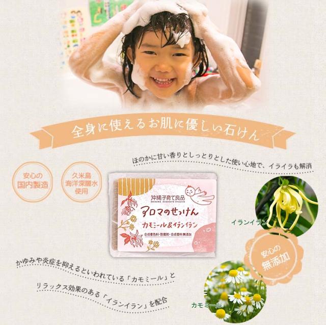 「カモミール&イランイラン石鹸」は、沖縄生まれのアロマの無添加手作り石鹸です。