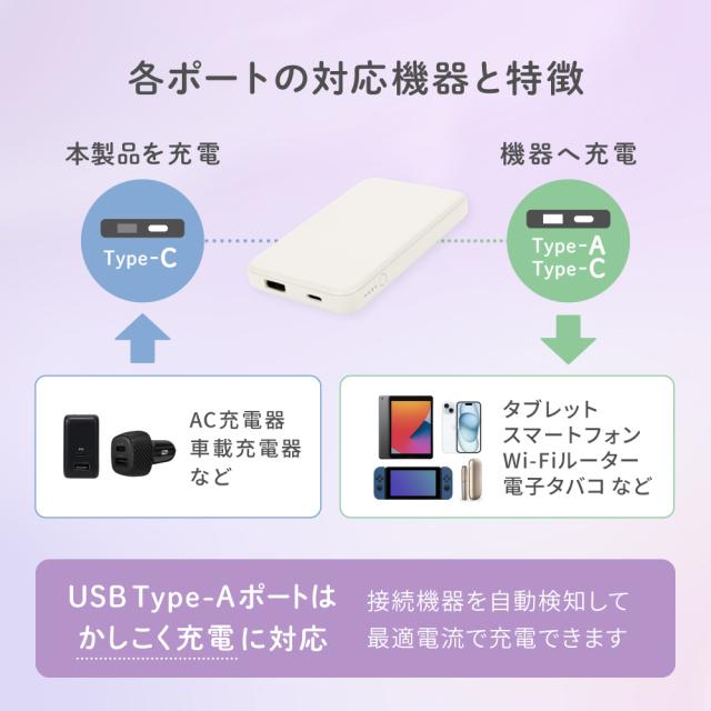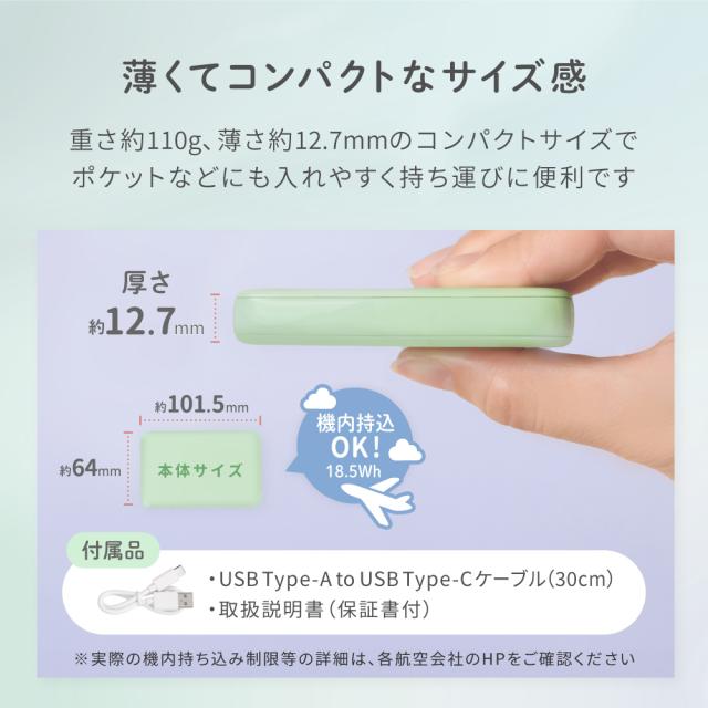 モバイルバッテリー 5000mAh 小型軽量 USB Type-C入出力+ USB Type-A出力 1.5年保証 防災
